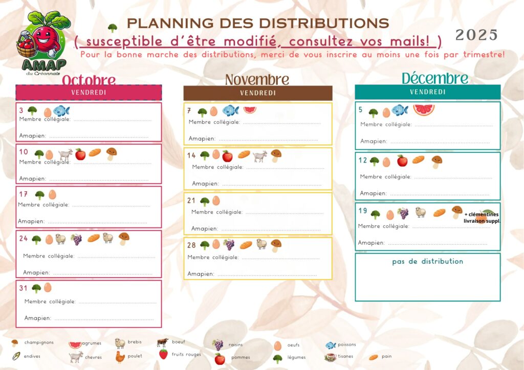 Le planning des distributions du 4ème trimestre est mis en ligne sur le site ainsi que sur nos réseaux sociaux !